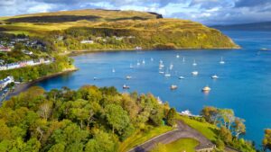 Upon reaching the Isle of Skye, begin your exploration in the scenic village of Portree. Wander through its colorful streets, marveling at the charming buildings, and savor the local cuisine at one of its inviting restaurants.